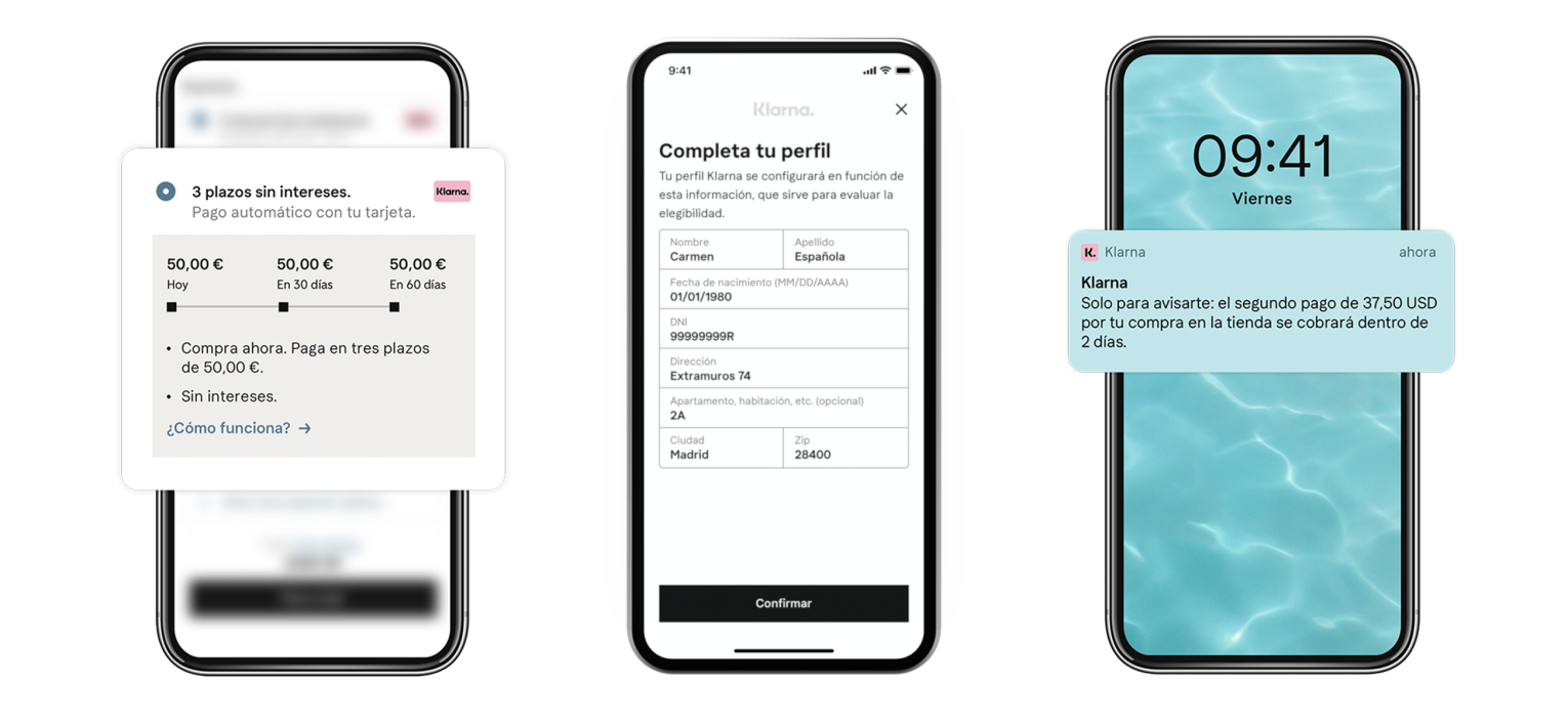 Klarna te enviará un e-mail de confirmación y recordatorios en el momento de pagar.
